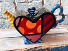 Romero Multicolor Britto Heart Shaped Teapot Giftcraft 2009 Popart